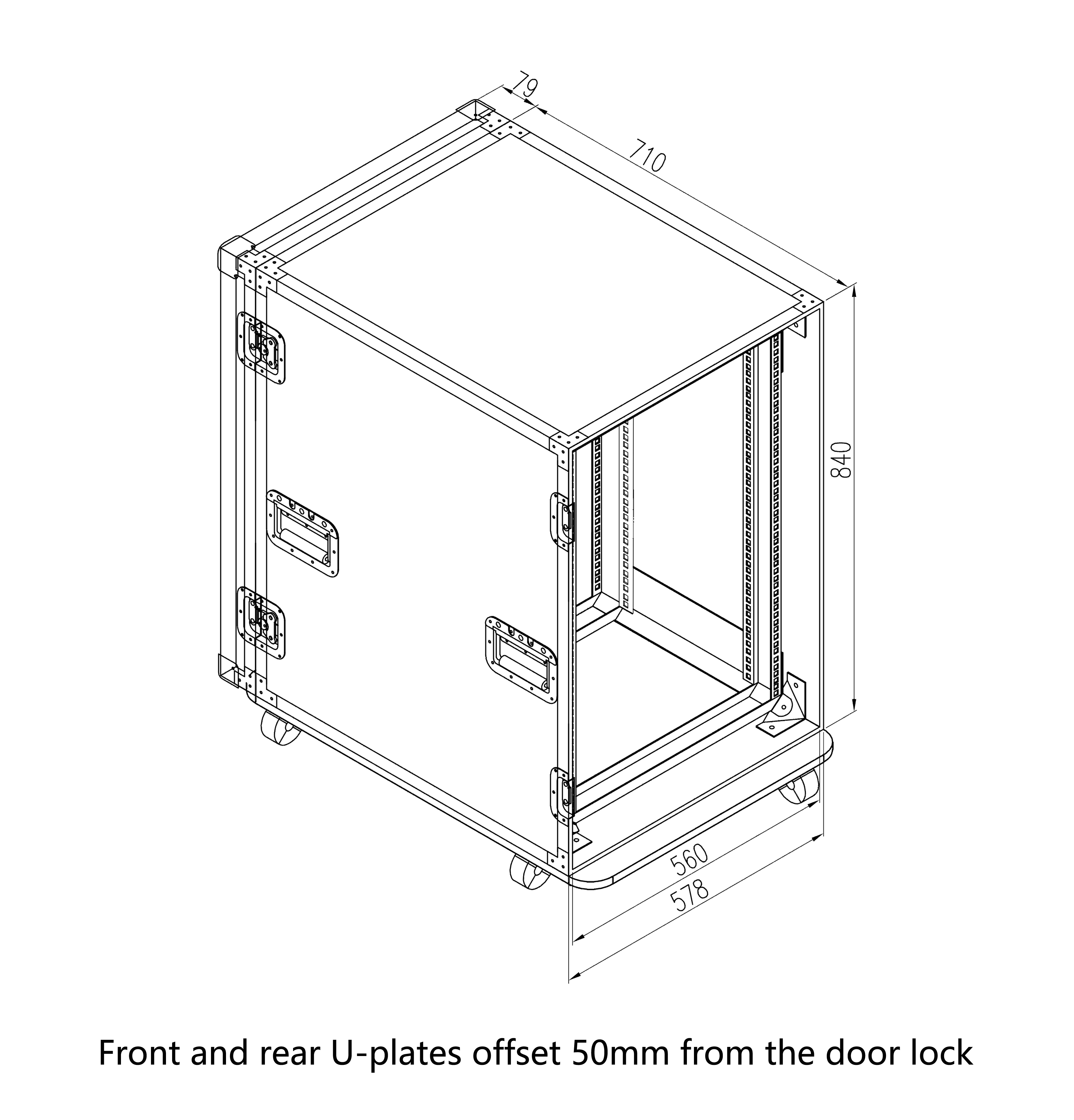 The outer case is constructed from 12MM multilayer plywood and surfaced with black leather-grain fireproof laminate. The front and rear covers are designed to interlock. Internally, the frame is secured within the chassis using spring-loaded rubber dampeners, providing effective shock absorption during transportation.