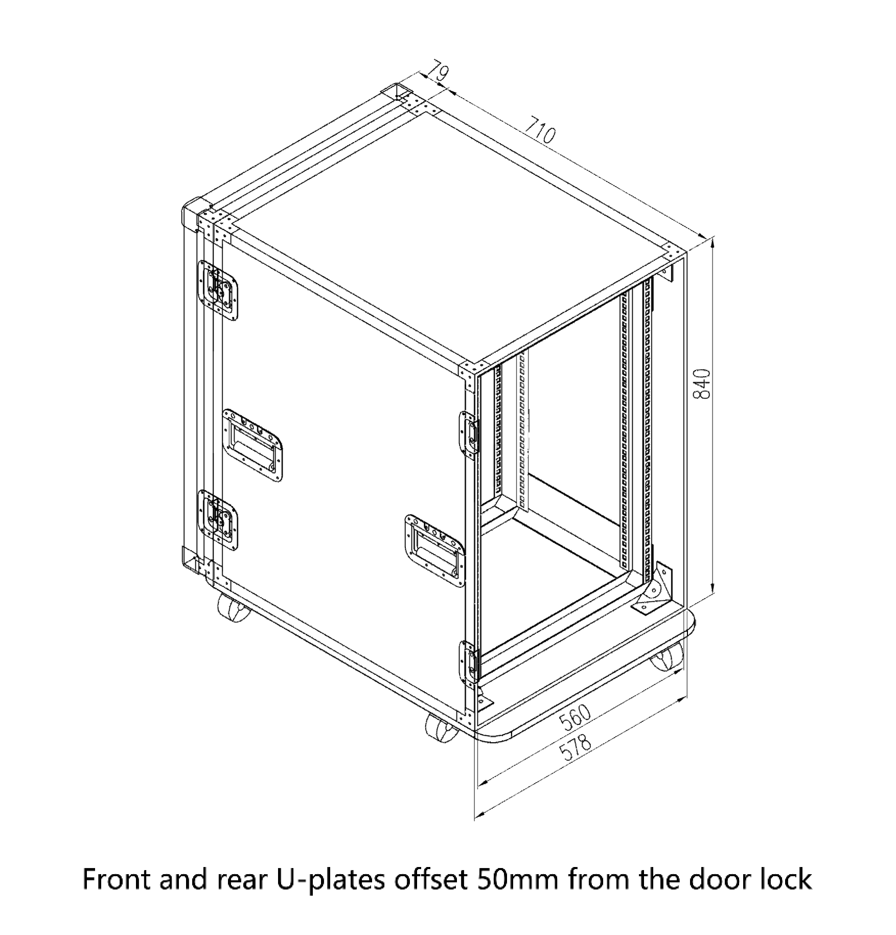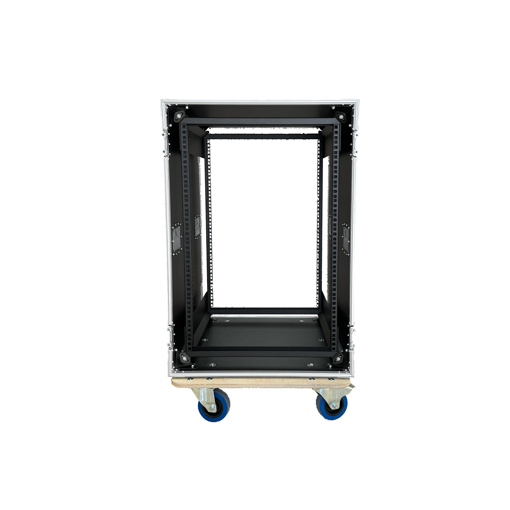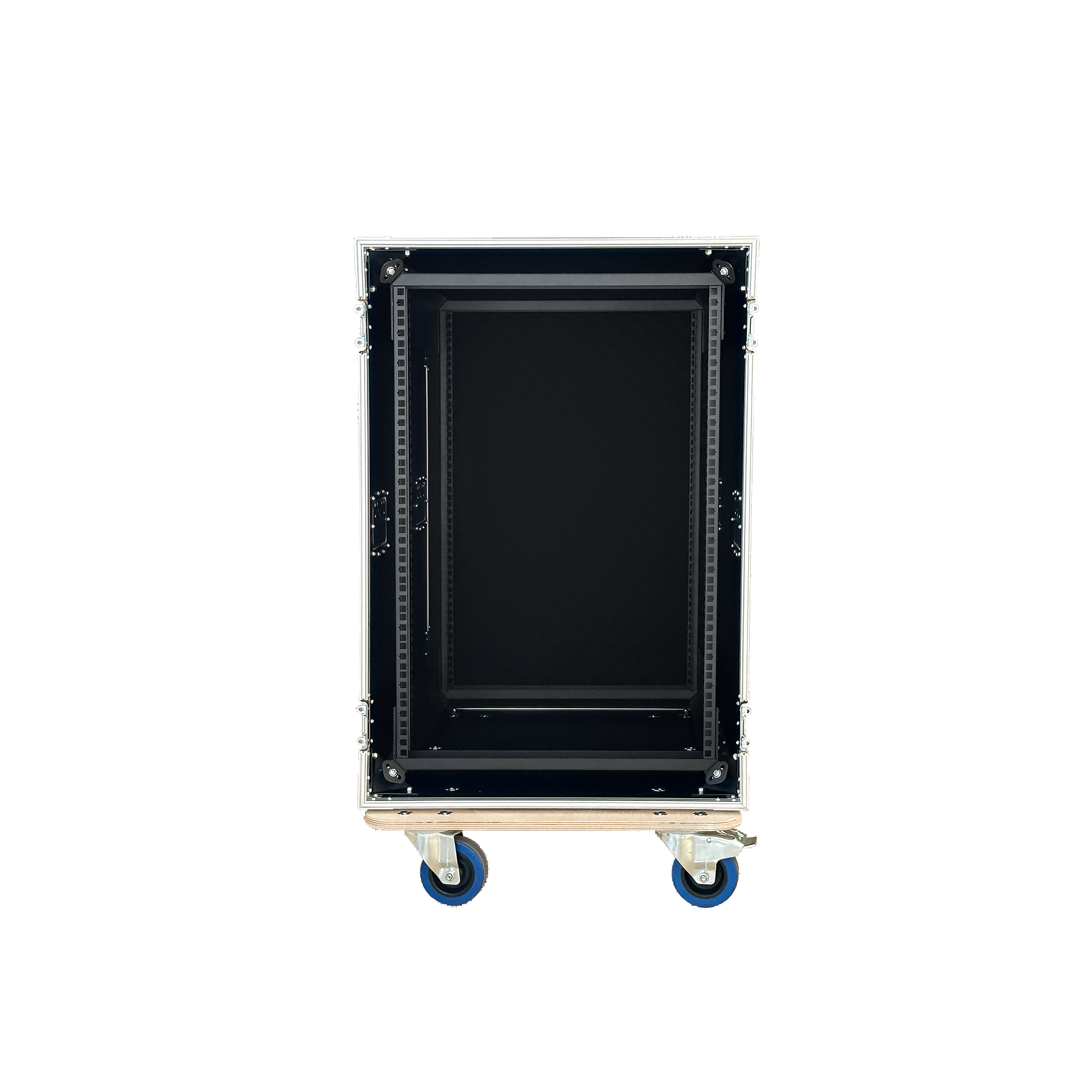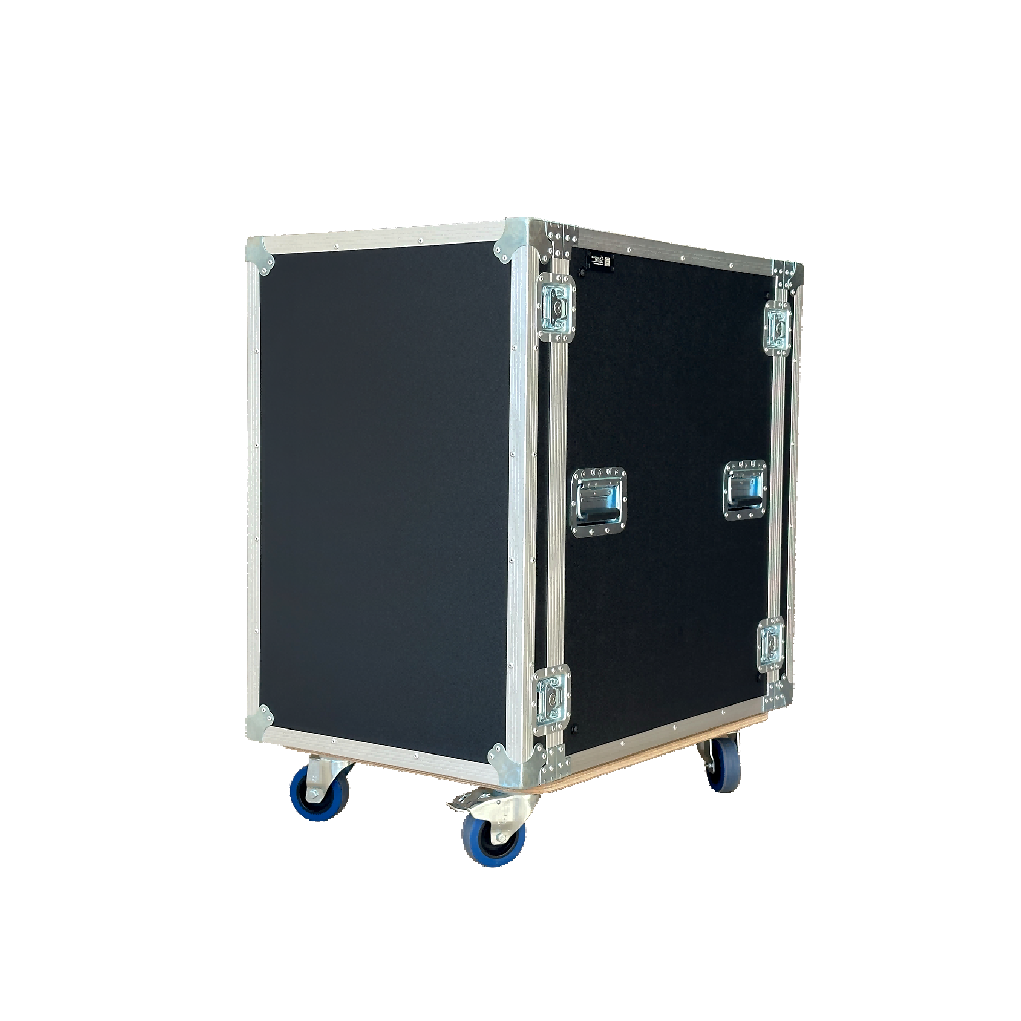 The case is constructed from 12MM multilayer plywood and surfaced with black leather-grain fireproof laminate. The front and rear covers are designed to interlock. Internally, the frame is secured within the chassis using spring-loaded rubber dampeners, providing effective shock absorption during transportation.