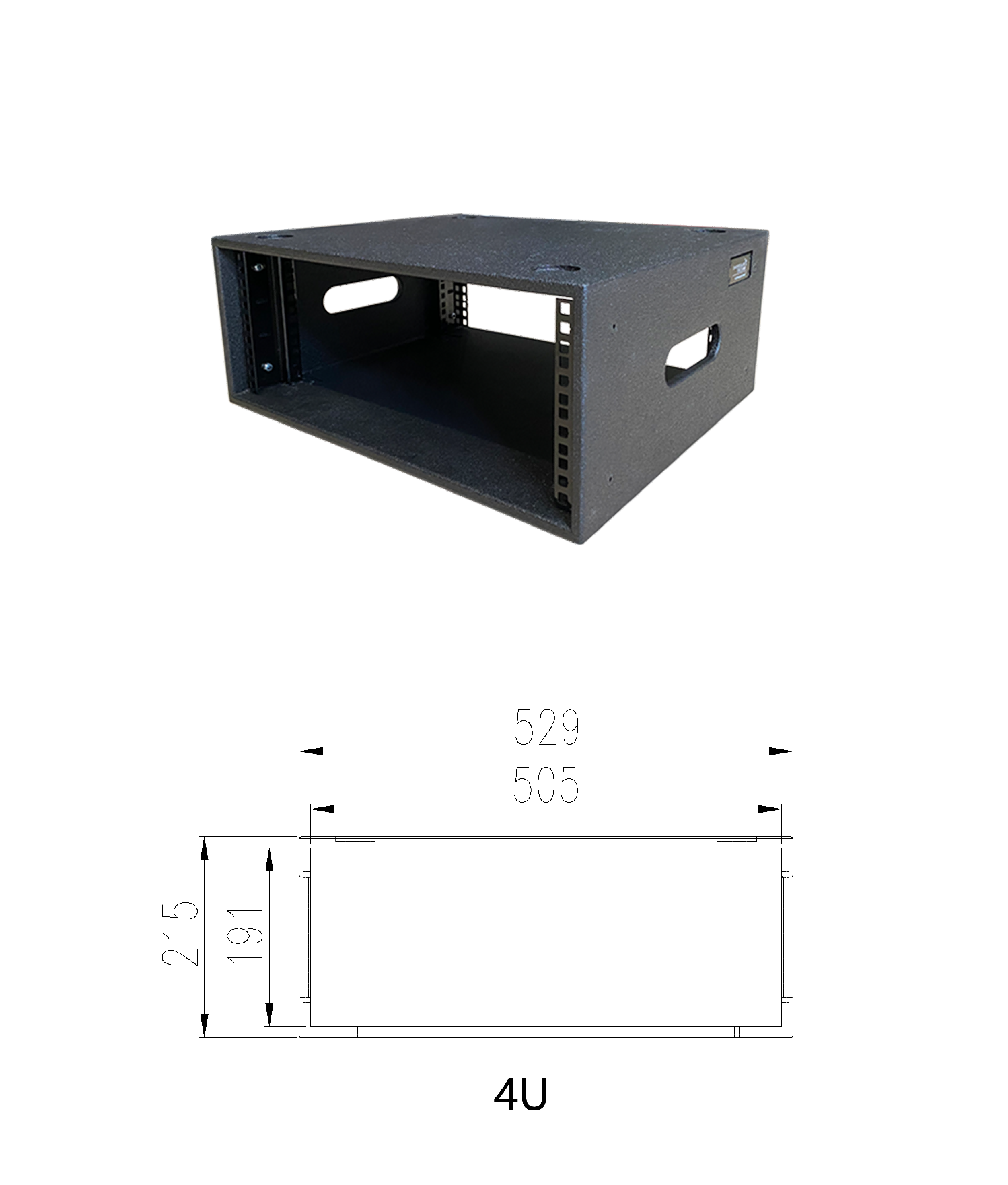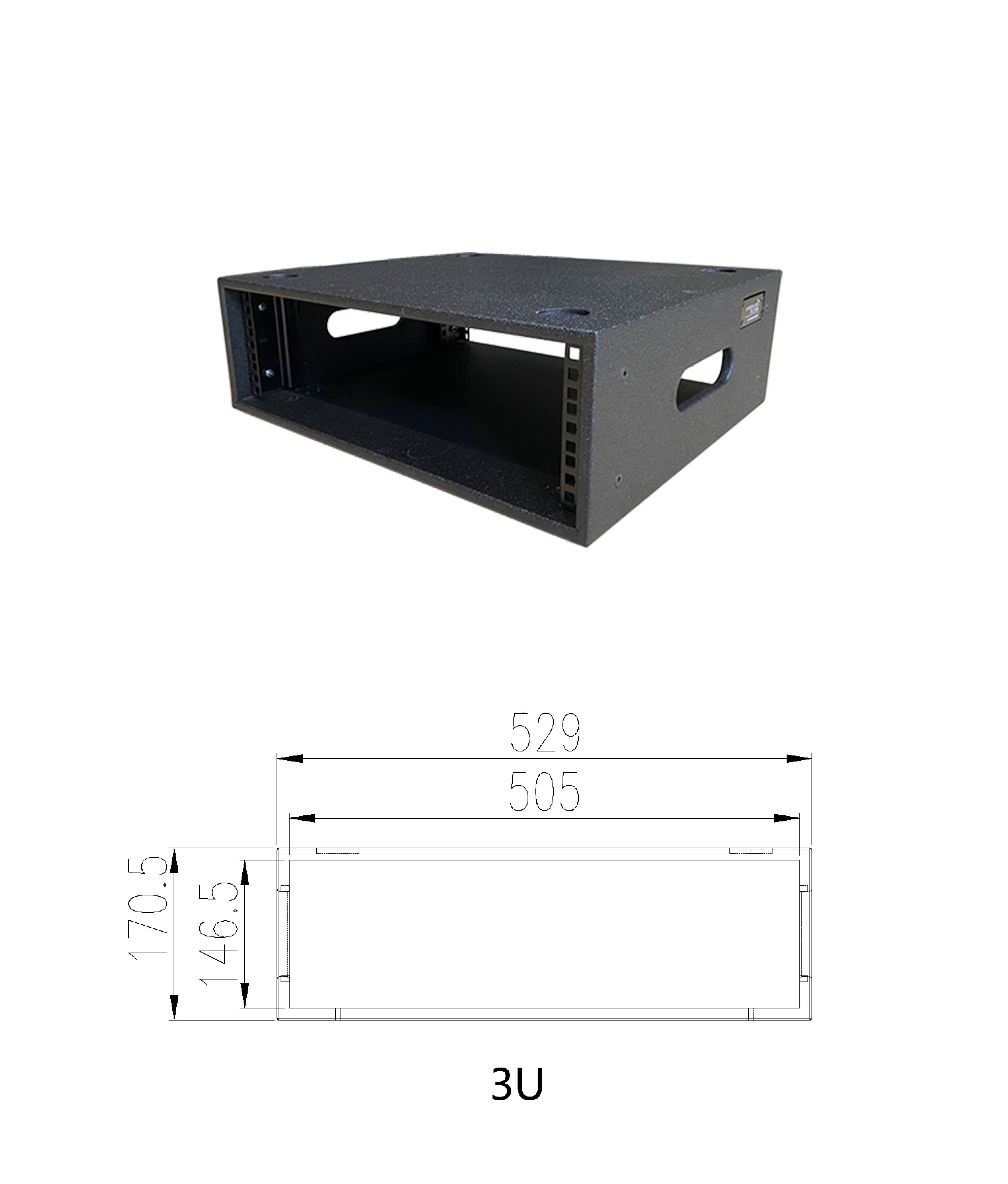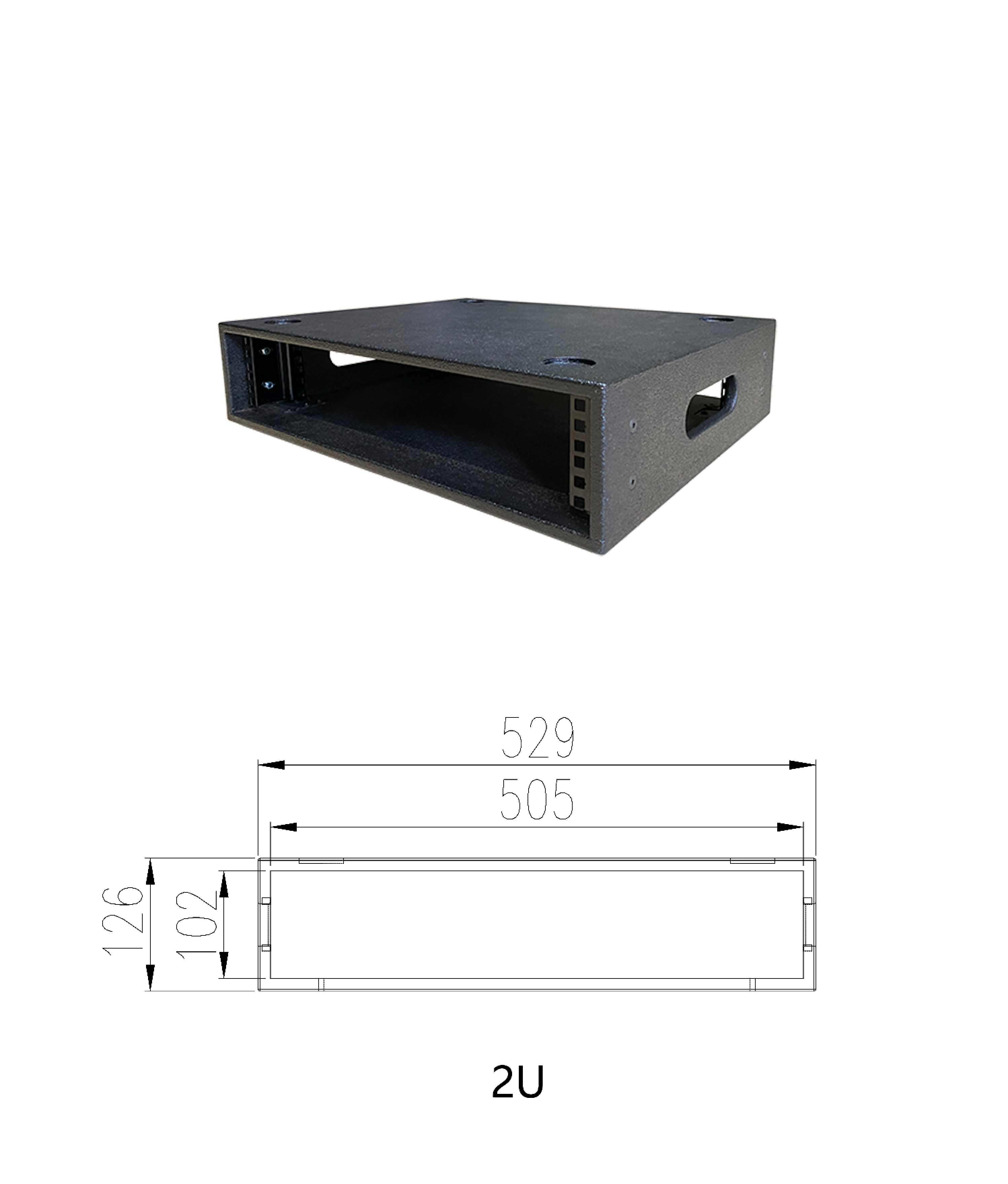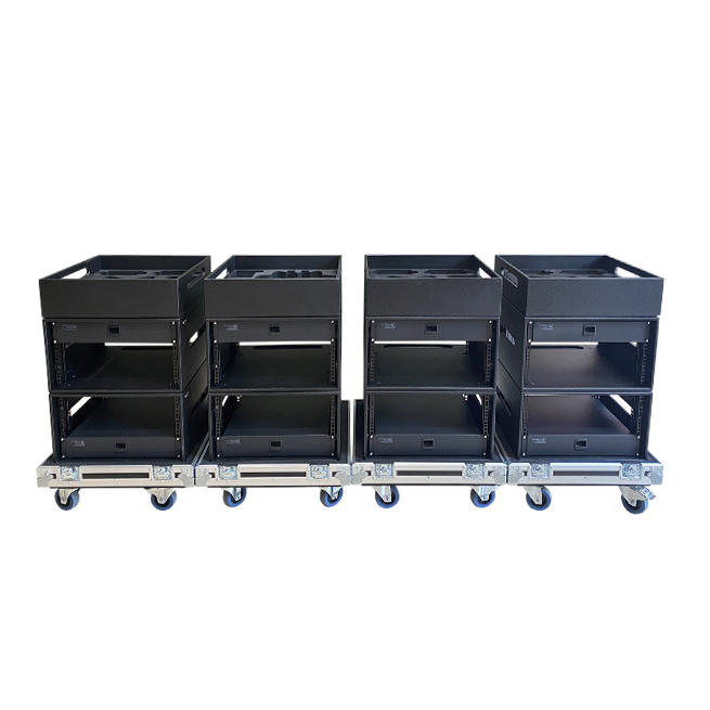 The case is constructed from 9MM multilayer plywood surfaced with black leather-grain fireproof laminate, while the inner case is built from 12MM domestic birch wood coated with black water-based polyurea paint. The structure is typically designed as separate modular units, where two or three U-space cases form a set—one for equipment installation and the others equipped with steel drawers for storing devices such as microphones, bodypacks, and microphone preamps. This setup not only allows for convenient placement on console tabletops but also provides dual protection for valuable microphone preamplification equipment.