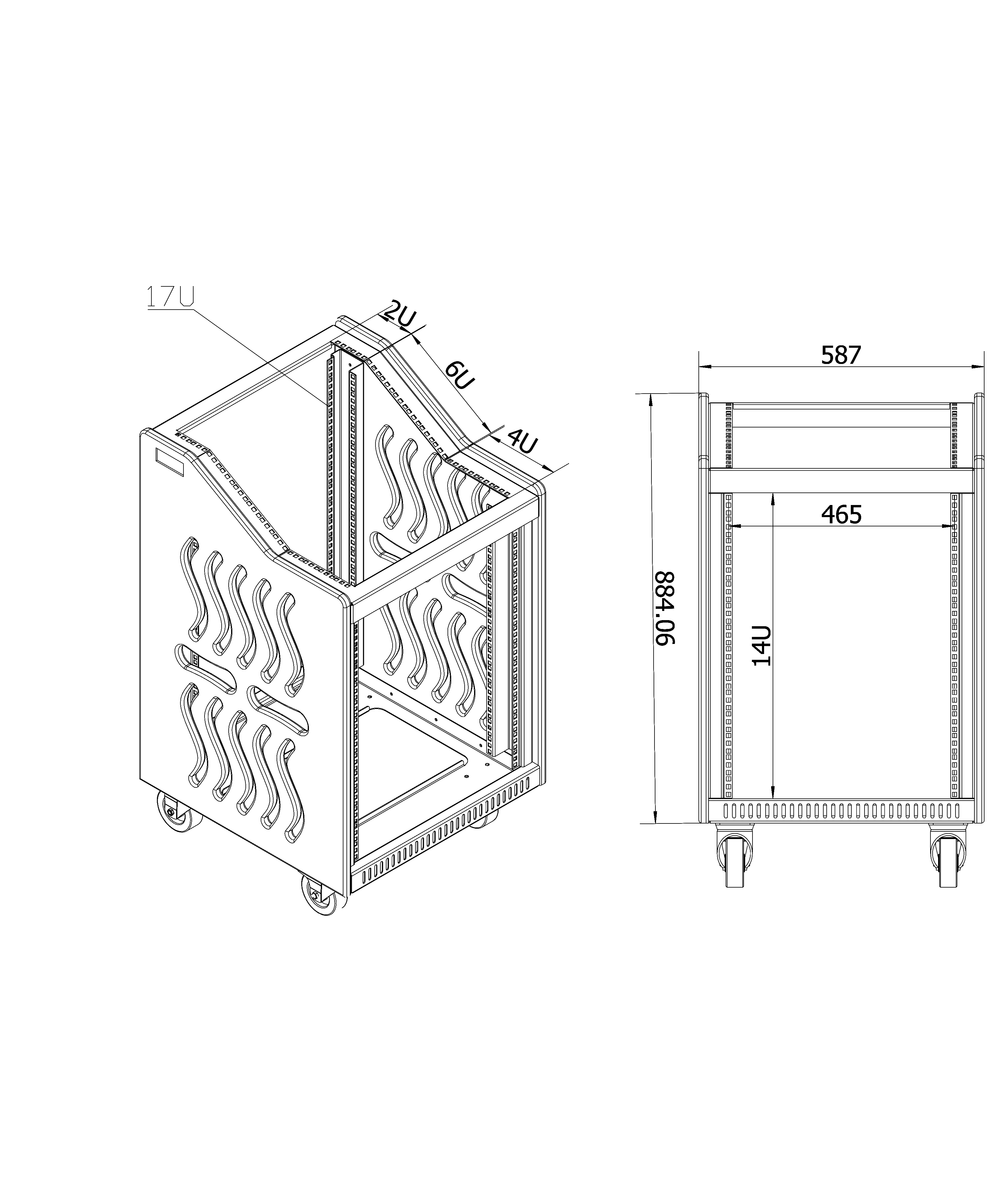 ● Other materials: Includes internal U-panels, 4-inch wide-tread wheels with diagonal braking