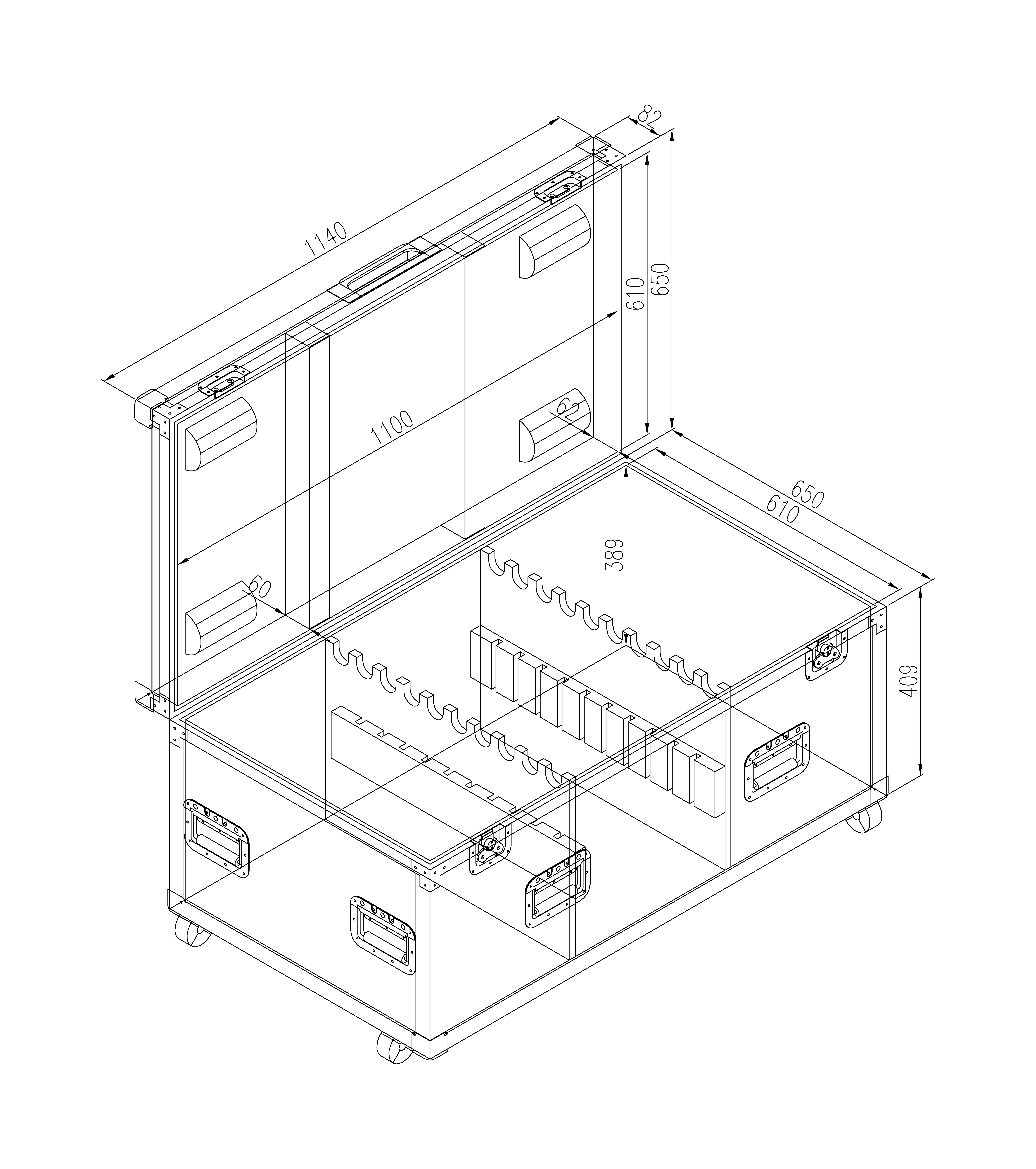 Constructed from 12MM multi-layer plywood with black textured fireproof laminate, this case offers multiple configuration options including 4-in-1, 8-in-1, 10-in-1, and 12-in-1 storage capacities. Designed with stackable capabilities, it optimizes space utilization for convenient storage and transportation while significantly improving organizational efficiency.