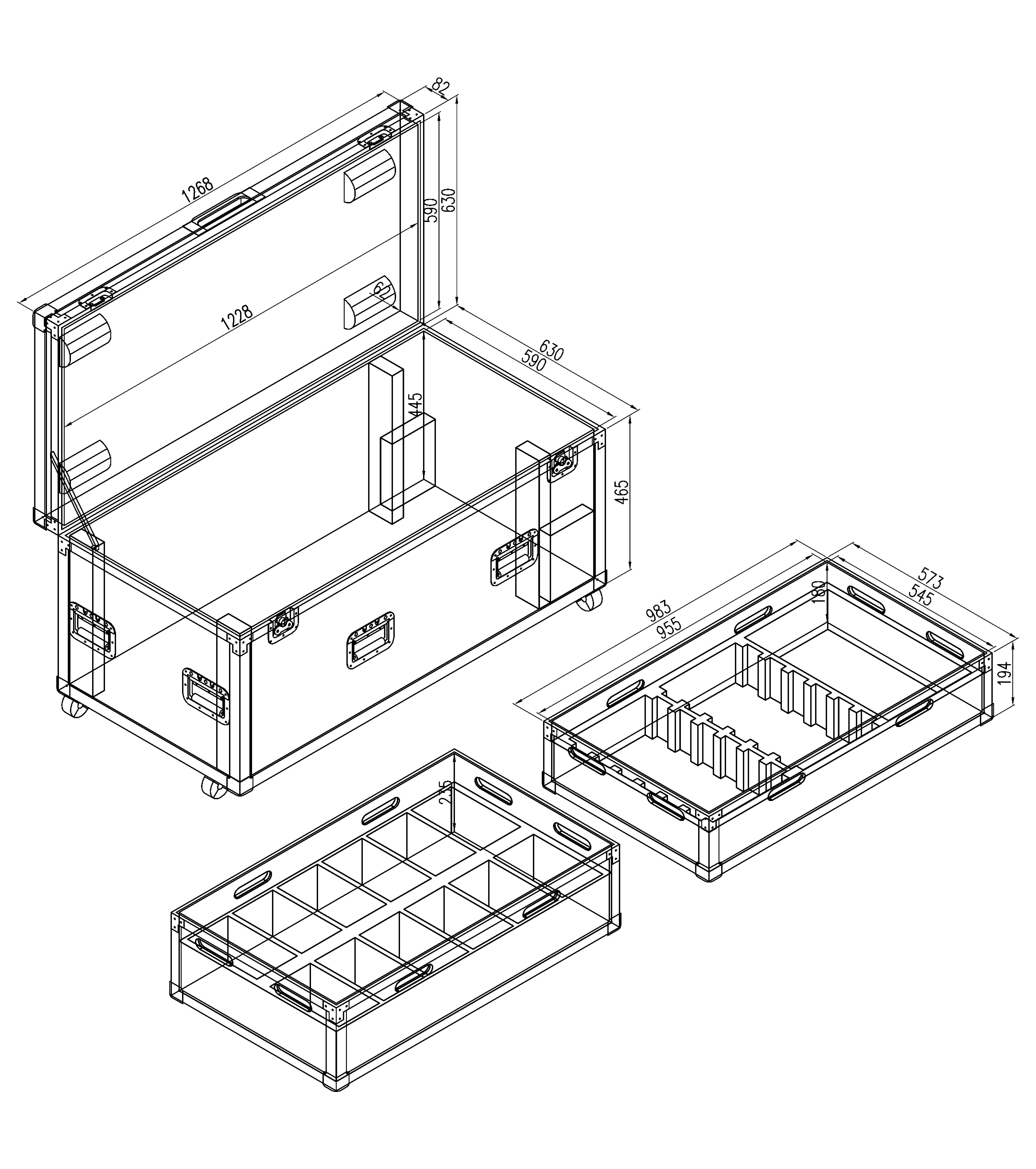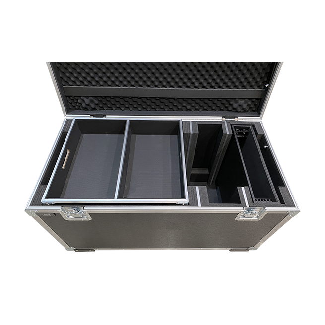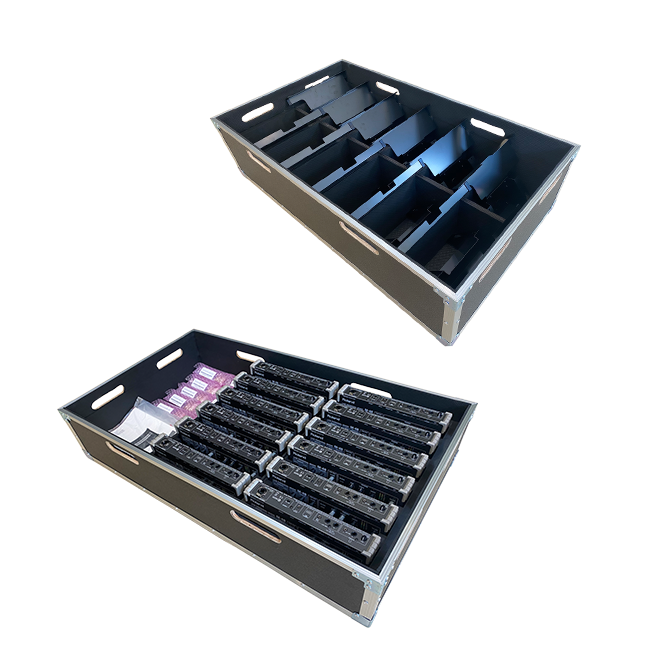 Constructed from 12MM multi-layer plywood with black textured fireproof laminate, this case is designed to accommodate monitoring equipment such as M48 and Auioun models. It can store 8 or 12 sets of M48 devices along with one main unit, enabling quick and easy storage with a nested case design.