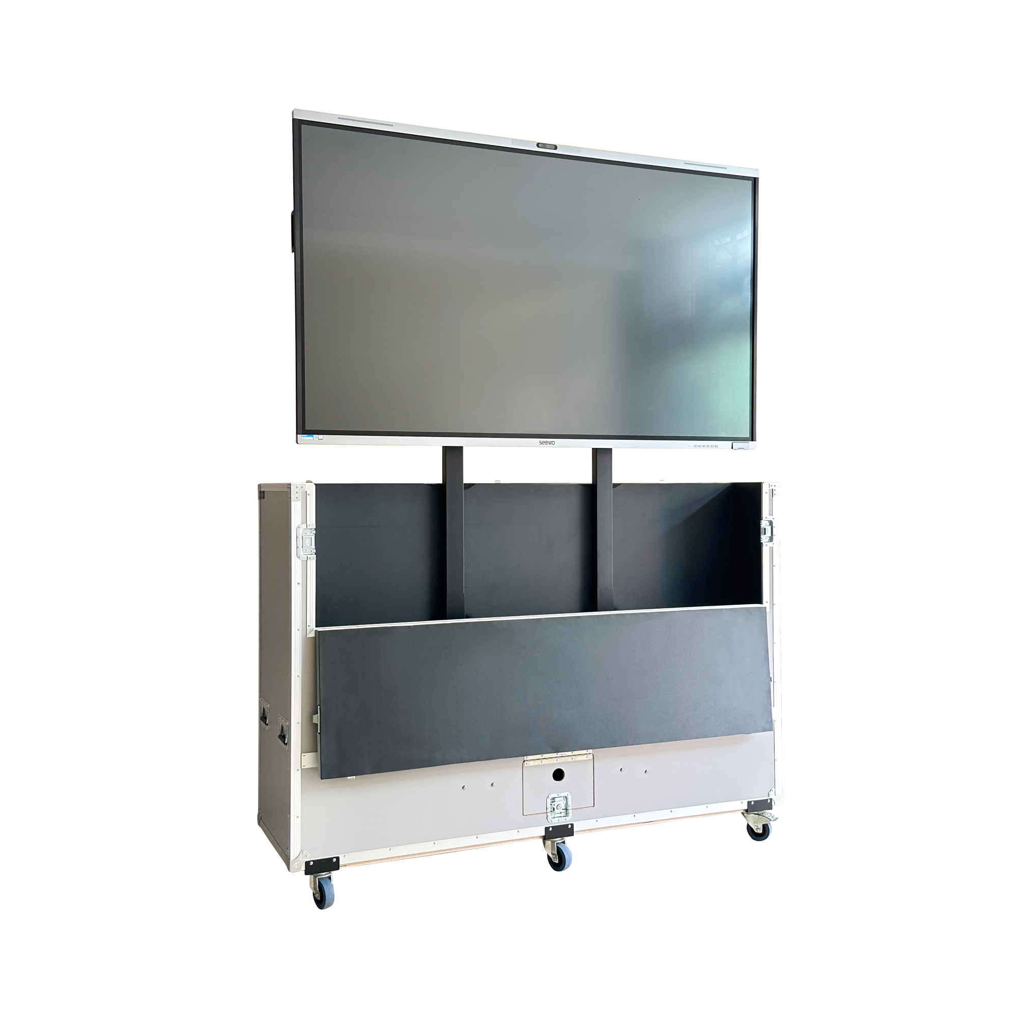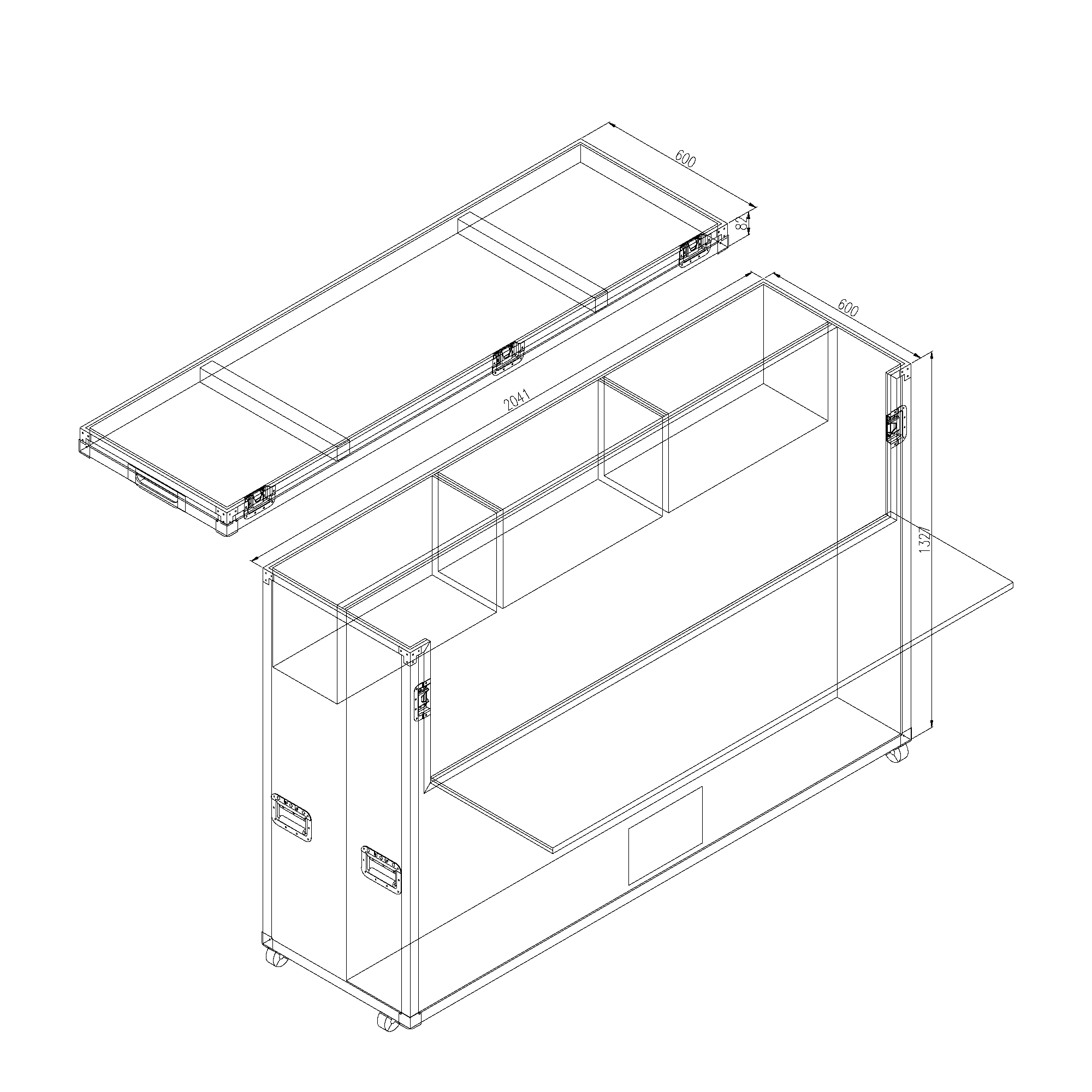 外箱採用12MM多層夾板表面貼附灰色平紋防火板製作而成。箱子內置升降器可使固定的電視機自動升降,最高能升2米多。