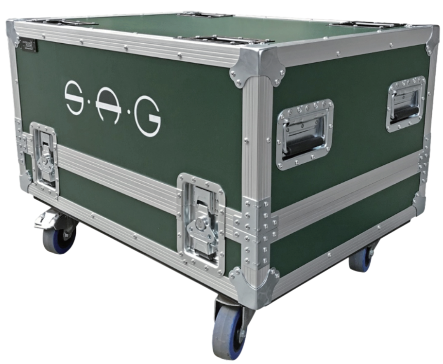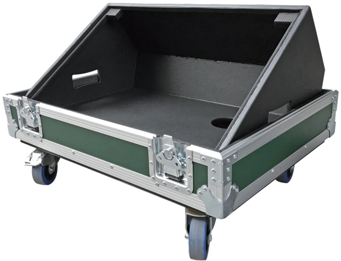 The case is constructed with 9MM multi-layer plywood and surfaced with black textured fireproof laminate. The interior features custom-built 12MM domestic birch wood panels finished with water-based polyurea coating. Utilizing a nesting case configuration, it securely immobilizes displays and provides reliable protection against transit hazards.
