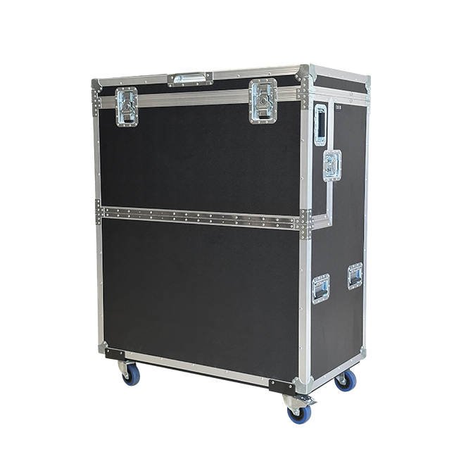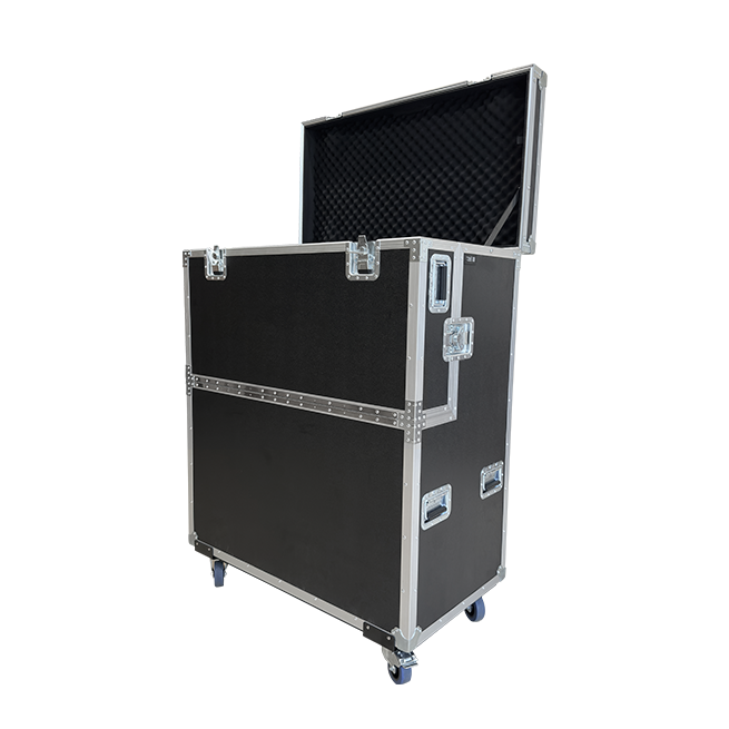 外箱採用12MM多層夾板表面貼附黑色皮紋防火板製作而成。可收納 1-2 米話筒杆,滿足不同長度需求;前端採用合頁連接設計,便於放置長款支架,提高效率。