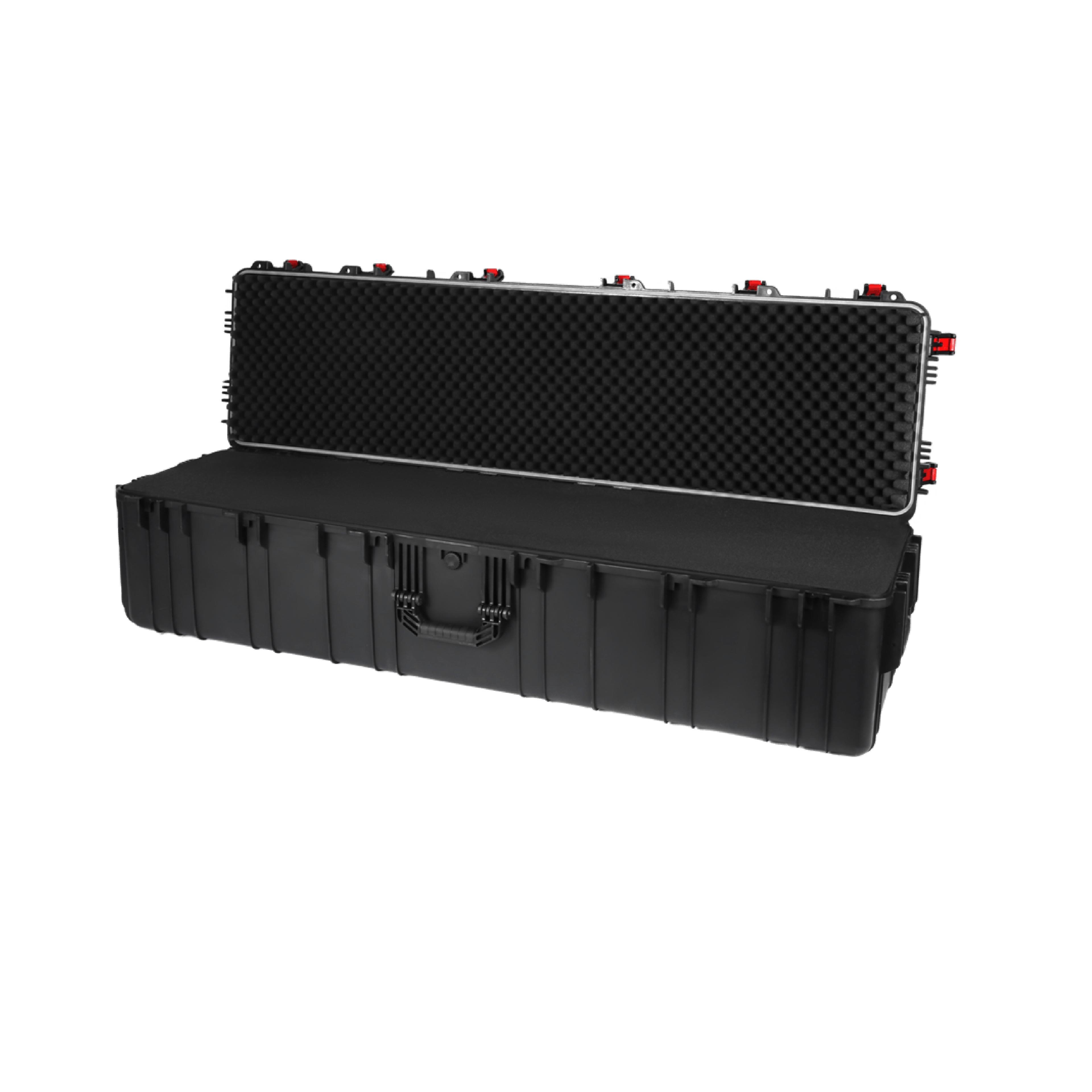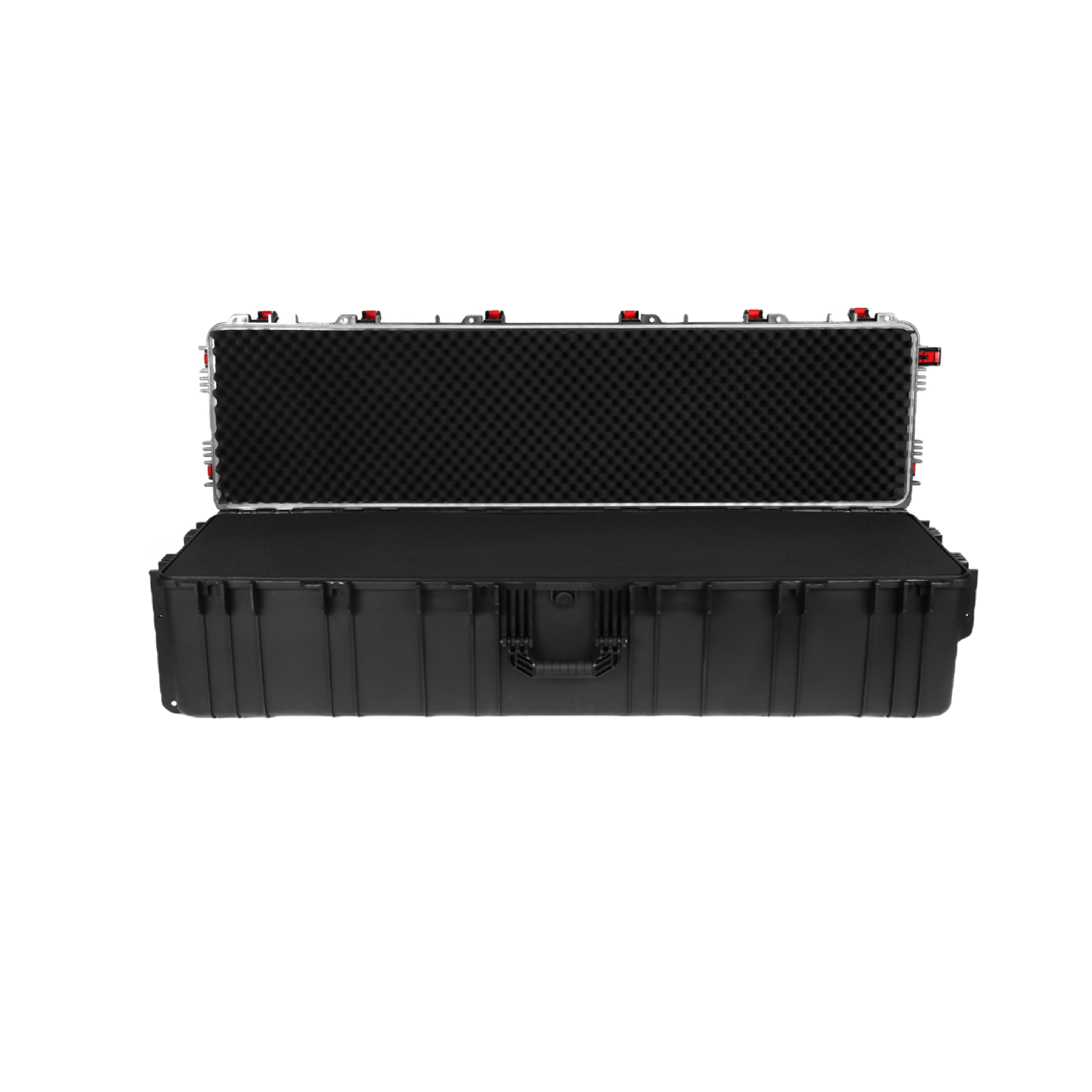 箱体采用高精密一体注塑成型工艺,表面哑光磨砂处理;具备防水防尘 IP67 等级、防震防跌落且重量轻便。支持定制内衬棉收纳设备,并且支持 LOGO打印。