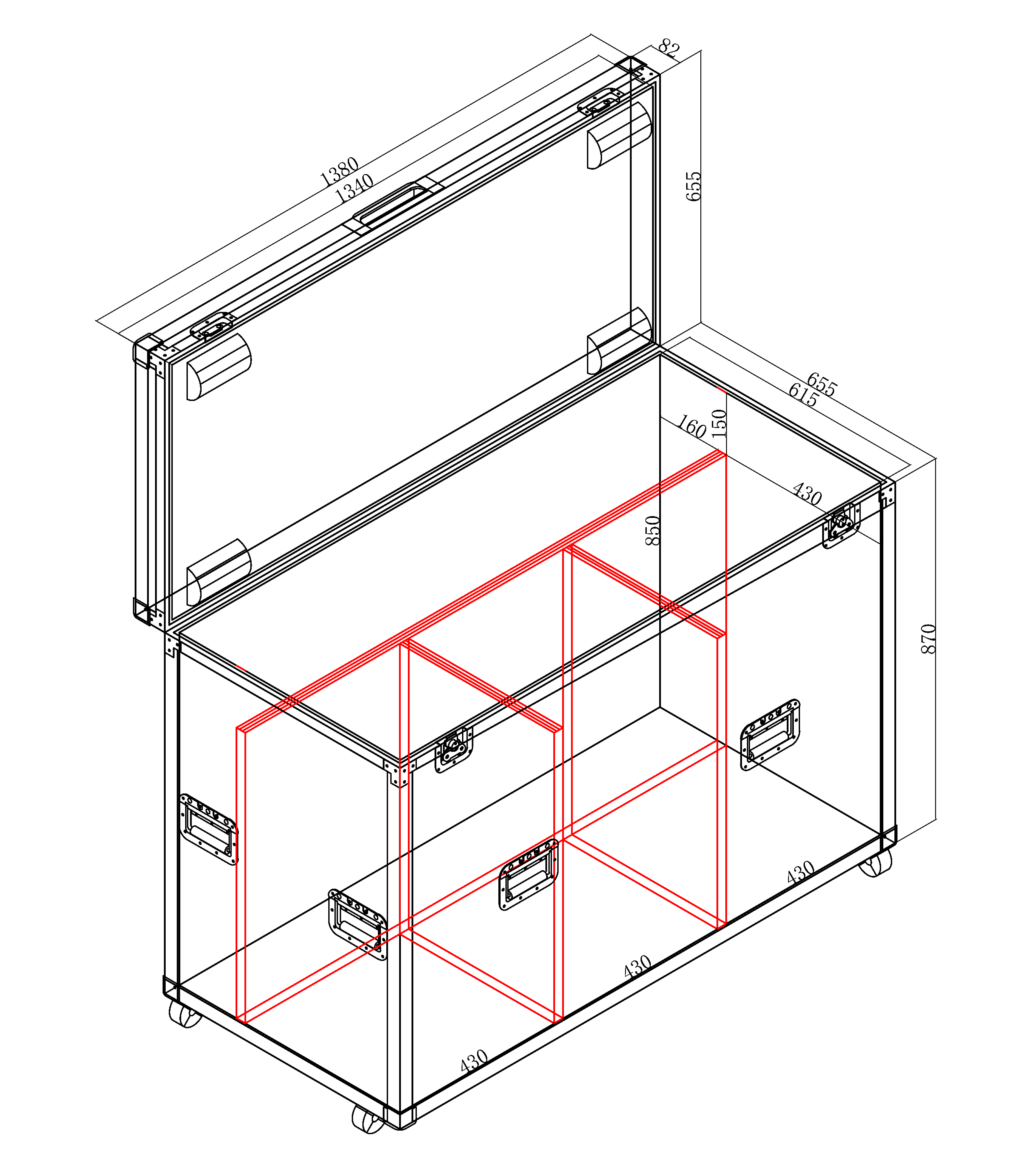 ● Other materials: PENN hardware, sturdy aluminum edge trim profiles, 4-inch wide pneumatic tires with diagonal braking system