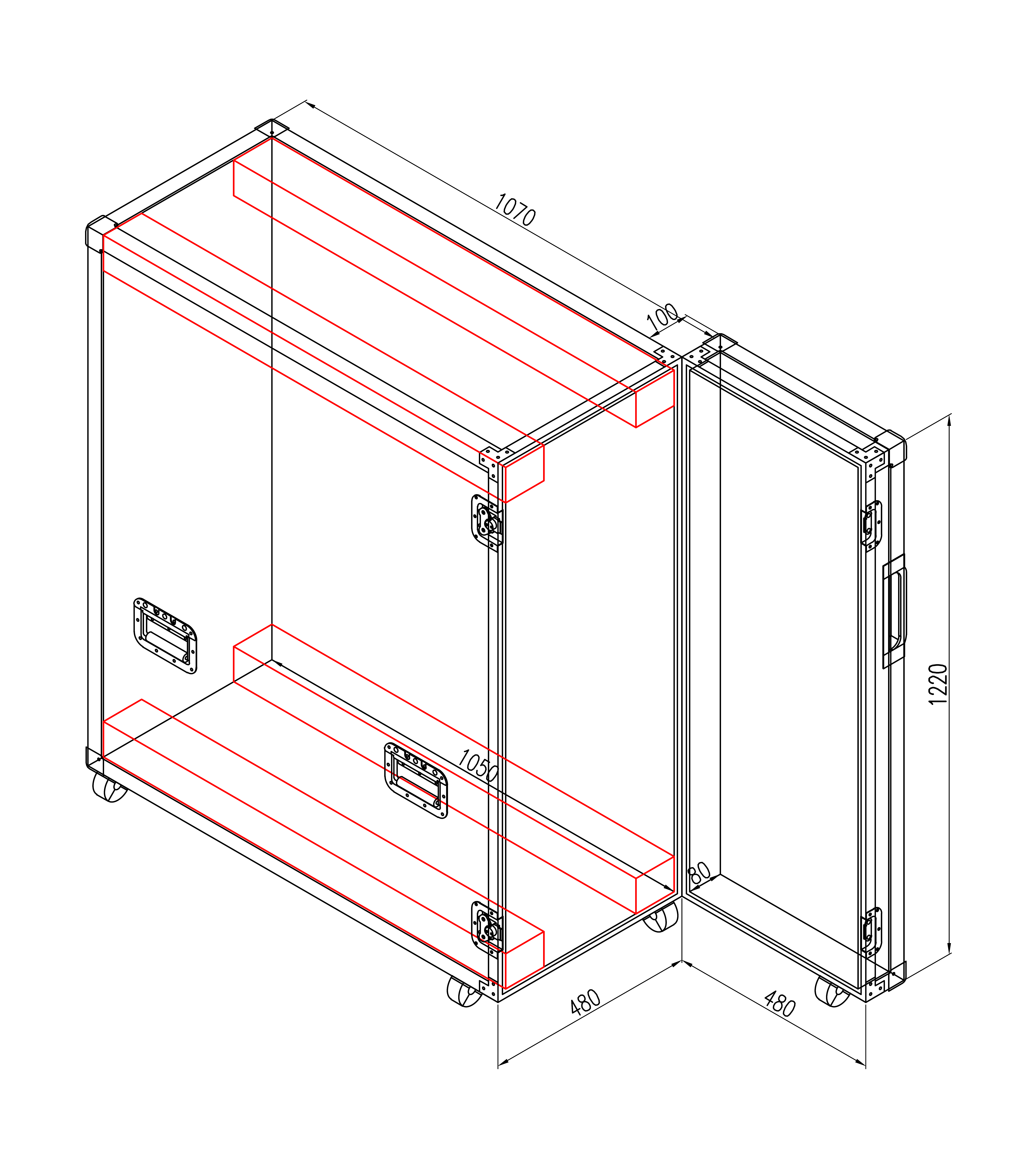 外箱採用12MM多層夾板表面貼附黑色皮紋防火板製作而成。根據設備尺寸製作放置空間大小,內箱有多層棉固定保護設備不易晃動 ,有效對抗運輸途中的風險。