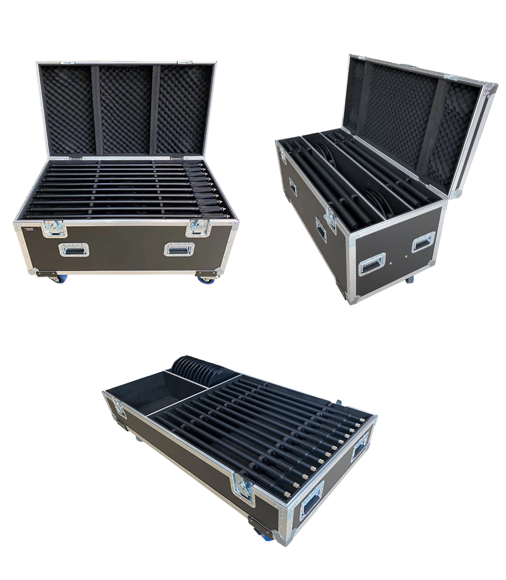 採用鐵製圓盤為底座,立柱可調節高度,穩固支撐音箱,適配家庭影音、會議室、展會等場景,可搭配航空箱進行收納。