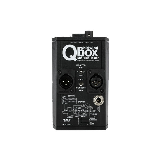 从1997年开始,Qbox就成为了Whirlwind最为成功“暗盒”产品。Qbox是一个全功能的音频 线路探测器,非常适合巡演,维保,安装等任何需要布设音频线缆的应用场景。Qbox包含一个 拾音器、一个扬声器单元、一个测试信号发生器、一个标准的耳机输出接口、一个1/4”大三芯 线路输入接口以及2k欧姆(电话线缆阻抗) 听筒输出接口。你可以非常容易的将Qbox挂在你的腰 带或设备包上。 Qbox让你非常容易的在系统线路上的任意一点,从音源到功放,切入和监听音频信号,并非常 快速的判断出问题所在。Qbox可以在不开启所有设备的情况下,非常快速的检测动圈话筒及线 路。内置的拾音器或信号发生器有三档电平调节,可用来检测信号路径或在多个线路中快速辨别 某一信号。Qbox通过标准的9V电池进行供电,外壳使用坚固的ABS材质,这可以让Qbox轻便 的同时可适用于户外作业。 插入耳机,使用内置麦克风,线缆两端各有一个Qbox即可完成内部通讯功能。可通过Qbox监 听标准的3线内通信号,LED指示灯可指示内通信号或幻象供电。使用Qbox作为音频系统搭建时 的信号发生测线器。同样还可以作为便携的有源监听来使用。Qbox的源选择模块,可以让你选 择以内置的电容麦克风通过麦克风或线路电平发送信号。扬声器音量控制可以让你选择输入信号 为麦克风或线路电平。可以让用户监听一路平衡信号,或在针脚2/3(接线线序对应为针脚1)传 输的两路非平衡信号,例如两路内通信号。