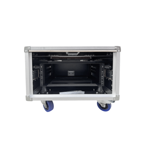 The exterior is constructed with 12MM multi-layer plywood surfaced with black leather-grain fireproof laminate. The top sliding door facilitates on-site storage and time efficiency. The internal frame is made of 5MM steel panels, secured within the chassis by multiple rubber pads on both sides to provide effective shock absorption during transportation.