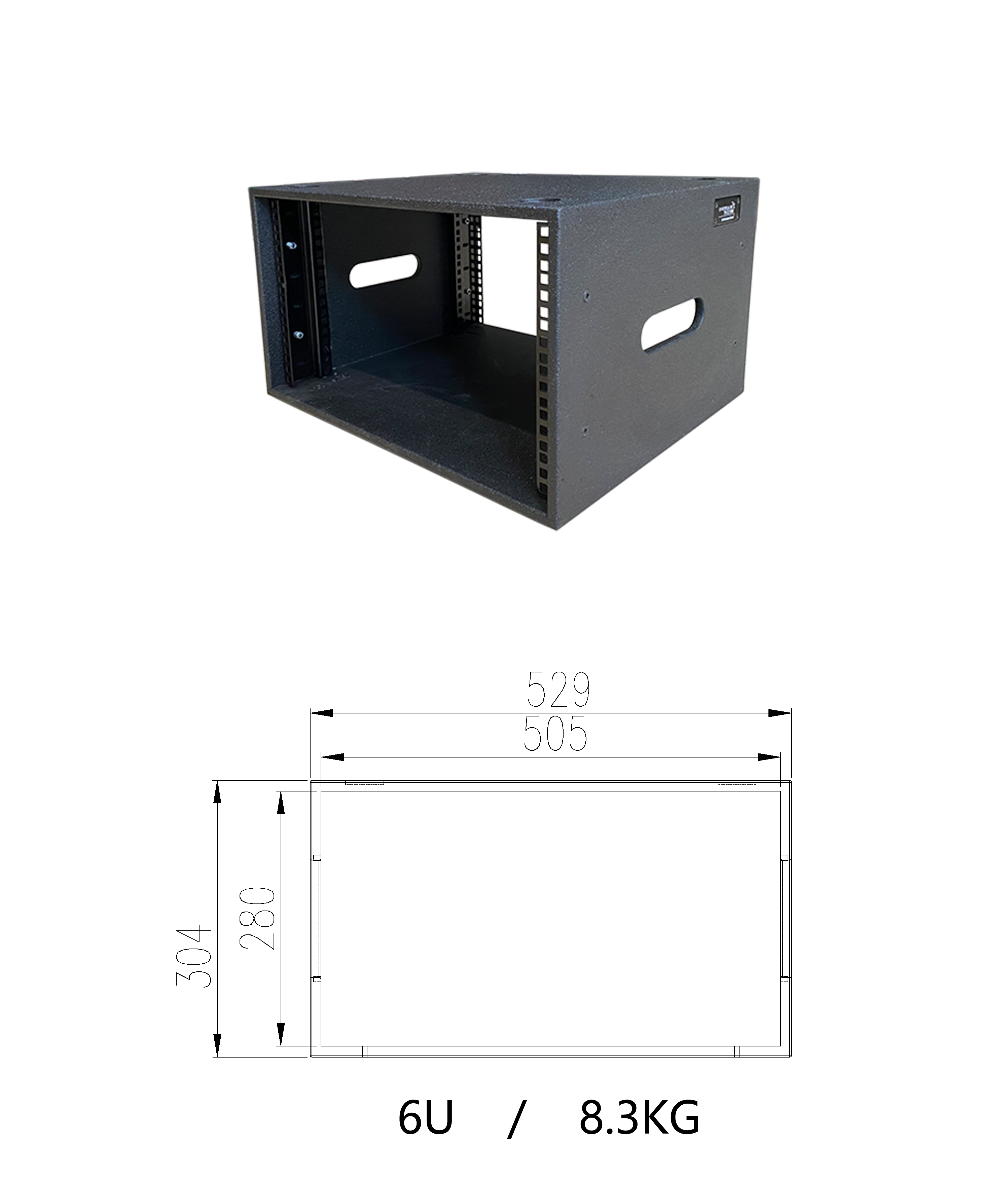 外箱採用9MM多層夾板表面貼附黑色皮紋防火板製作而成,內箱由12MM國產樺木板表面噴塗為黑色水性聚脲漆製作,其結構通常為分體,既2個或3個U箱為一組,一個用於安裝設備,其它用於安裝可收納話筒腰包放大器等設備的鐵抽屜,既方便於擱置在控臺臺面上也對貴重的話放設備起到了雙重保護作用。