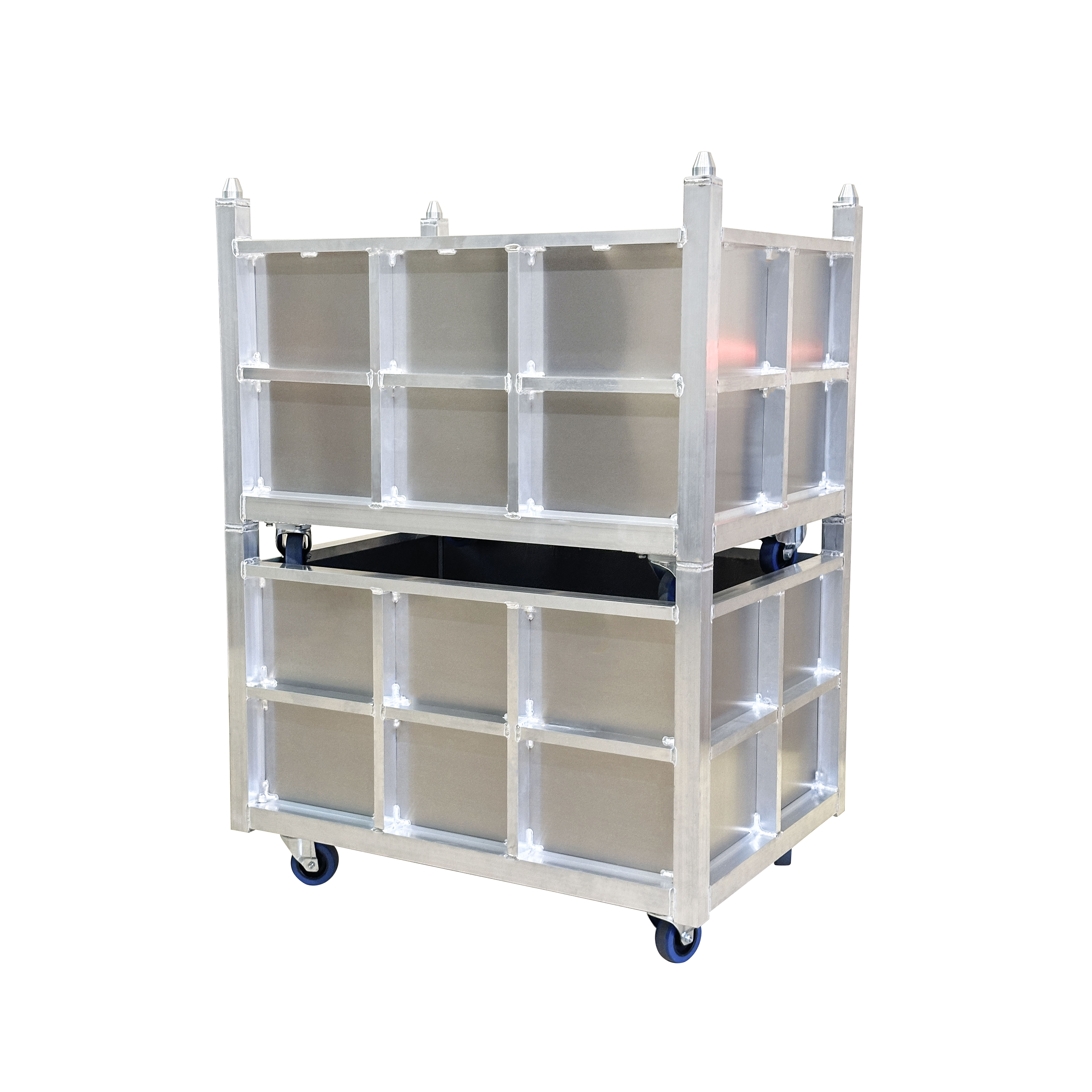 This aluminum cable crate represents the ultimate combination of stackable design, durability and lightweight construction. Crafted entirely from premium aluminum alloy, it offers exceptional strength while remaining easy to handle and transport. The base plate features multiple drainage holes to prevent water accumulation inside the crate.