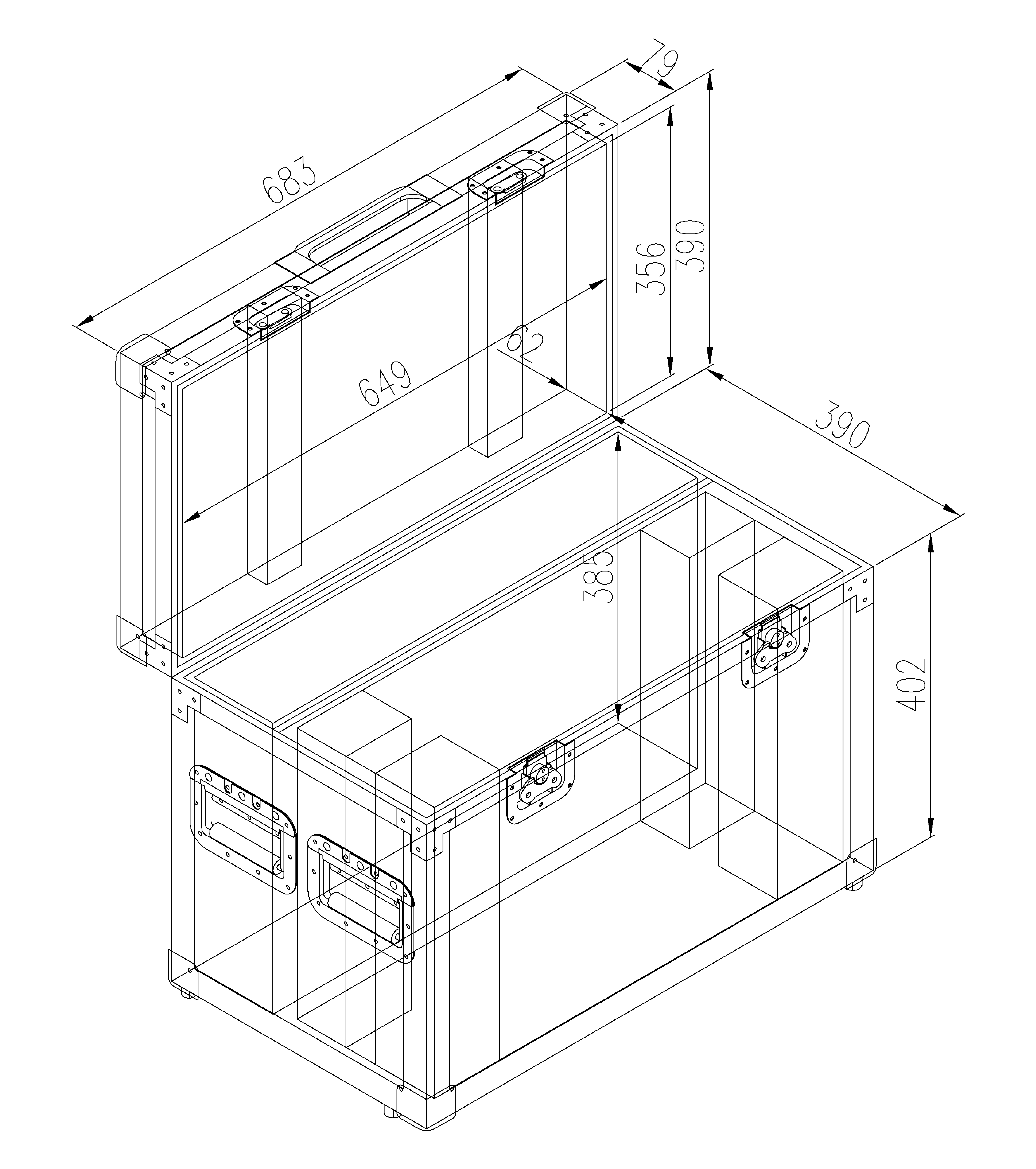 The case is constructed with 12MM multi-layer plywood and surfaced with black textured fireproof laminate. Designed for custom-sized computer monitors and television displays, it utilizes multi-layer reinforced cushioning to immobilize equipment and effectively withstand shocks and impacts during transit.