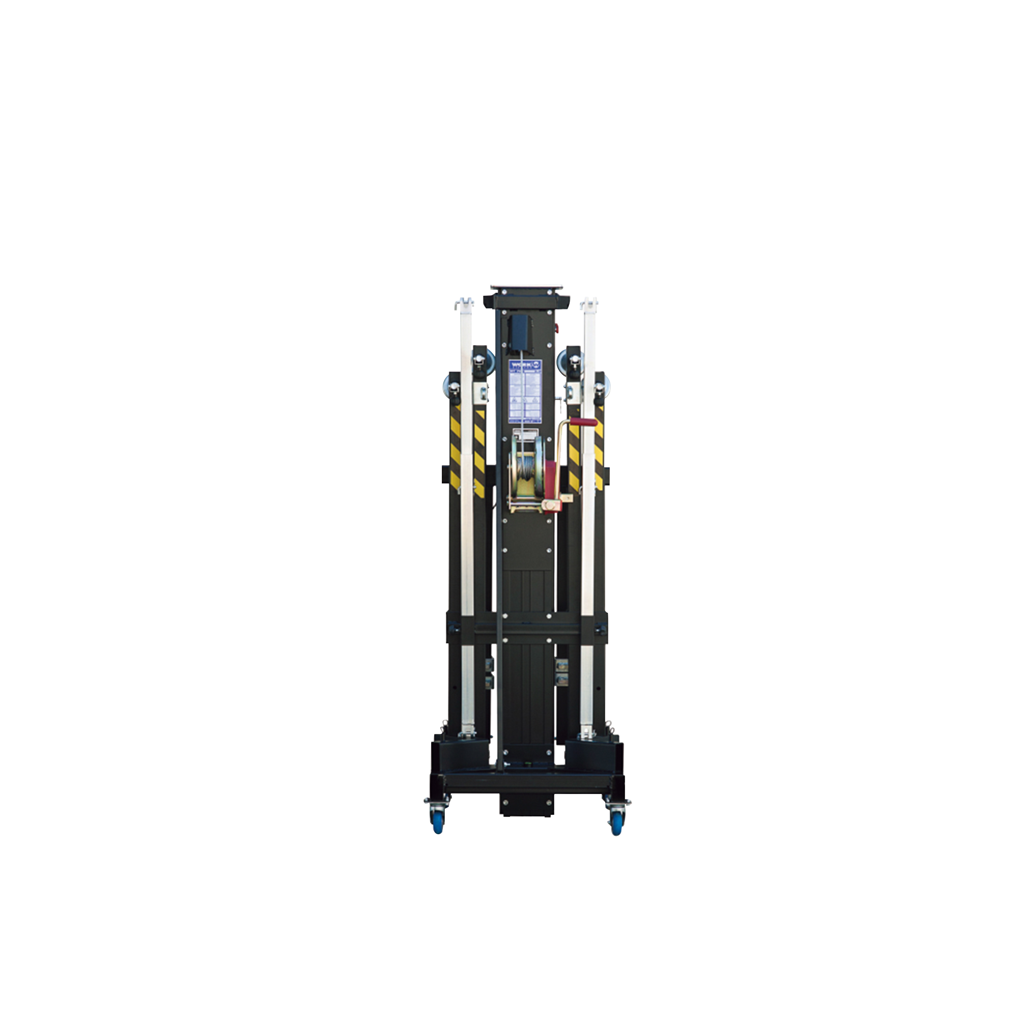 产品核心特性如下:配备高品质自动制动绞盘、钢制滑轮与超大尺寸线缆,确保折叠 / 展开过程稳定顺畅;采用四根挤压铝制成的可扩展型材,升降机前后部均设钢筋用于额外加固,且优化前支腿位置与间距,显著提升整体稳定性;升降机底部装有脚轮,便于场景内灵活调整位置;预留充足空间用于插入低音炮,完善线阵列系统配置。