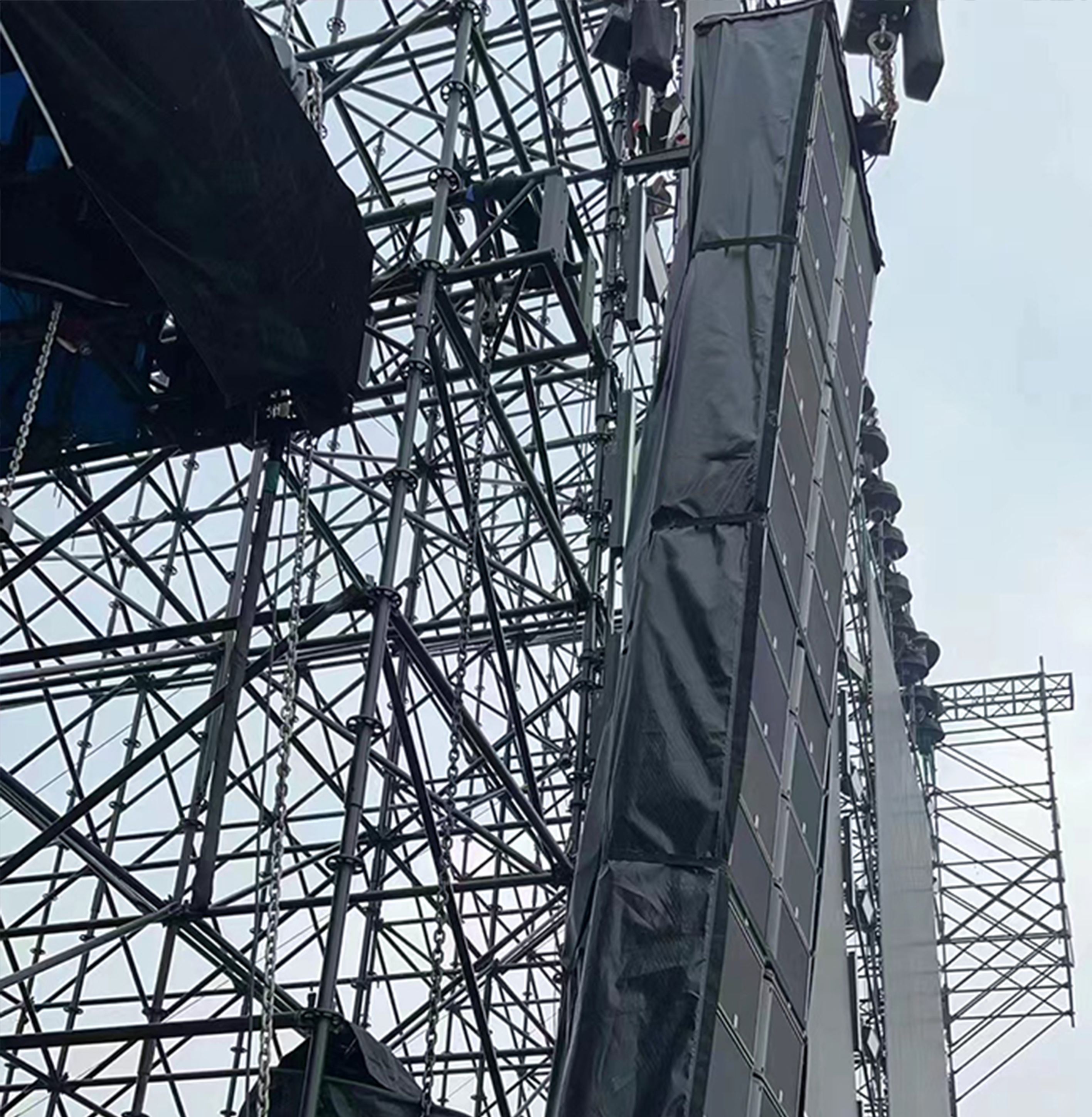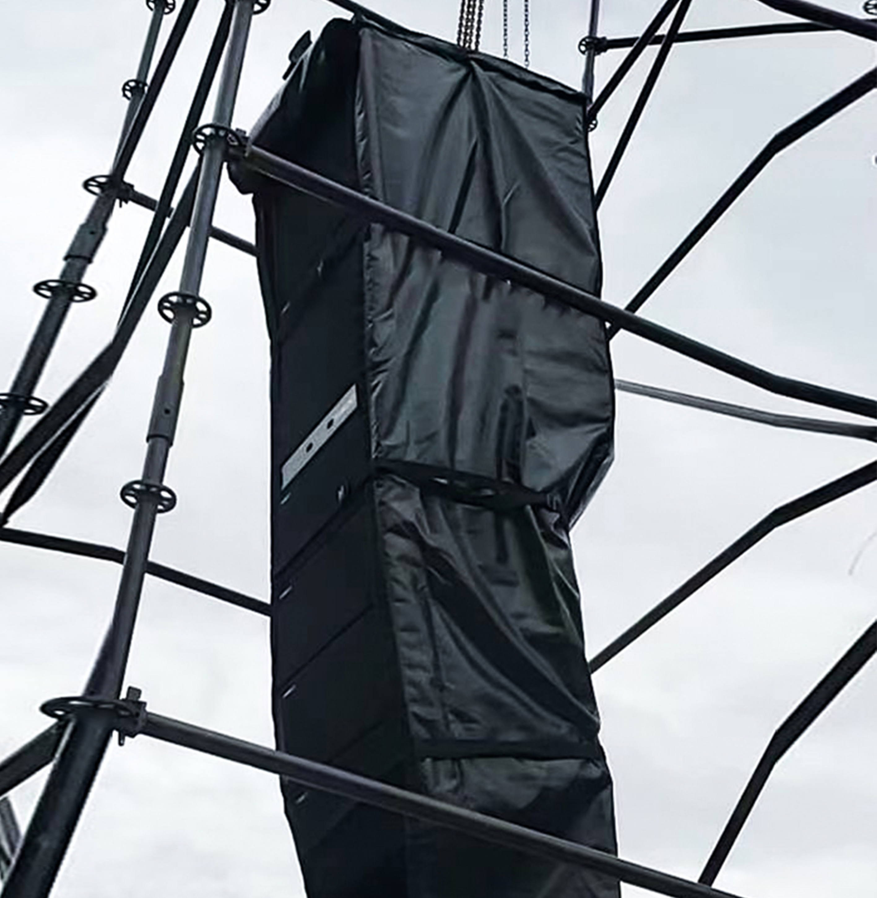 可根据喇叭尺寸,数量,量身定制,选用黑色单层防雨布,防水覆盖至喇叭吊架。