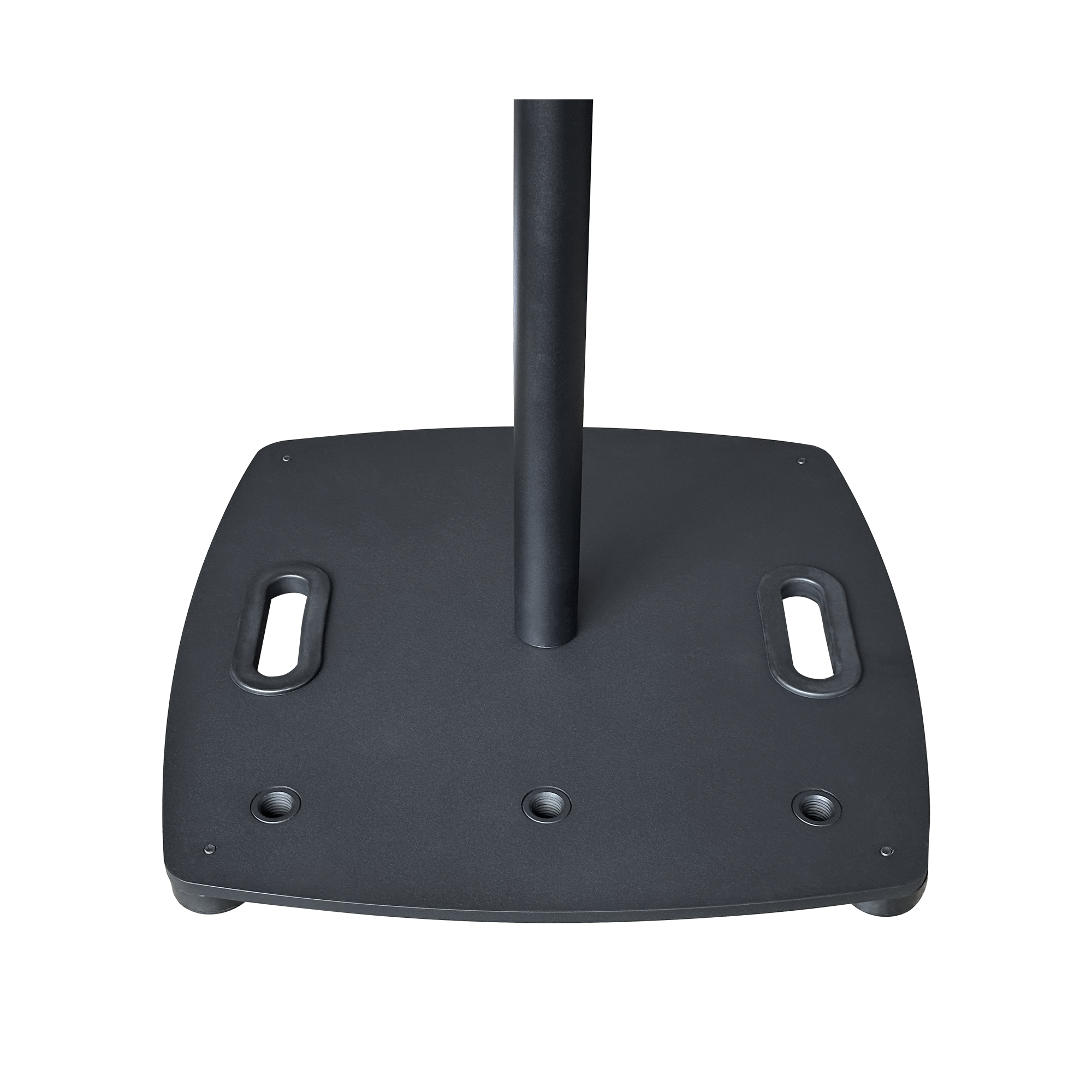 採用鐵製方形底座,底盤後側預設三個 M20 螺紋孔,可裝置支架,搭配膠腳墊防滑減震。手動調節高度,穩固支撐音箱 ,適配會議室、展會等場景,可搭配航空箱進行收納。
