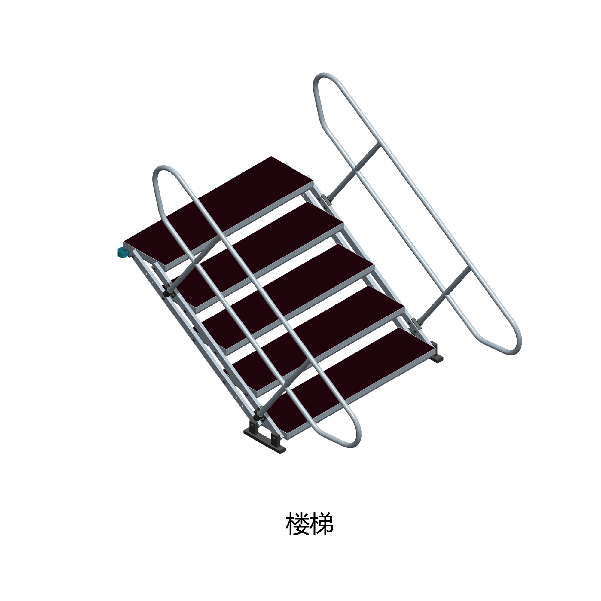 The stage platform is constructed with birch anti-slip panels, offering lightweight, slip-resistant, and durable properties. This model is equipped with aluminum frame handrails and stairs. The robust aluminum structure is combined with adjustable stage legs, ensuring easy installation and a load capacity of 750 kg.