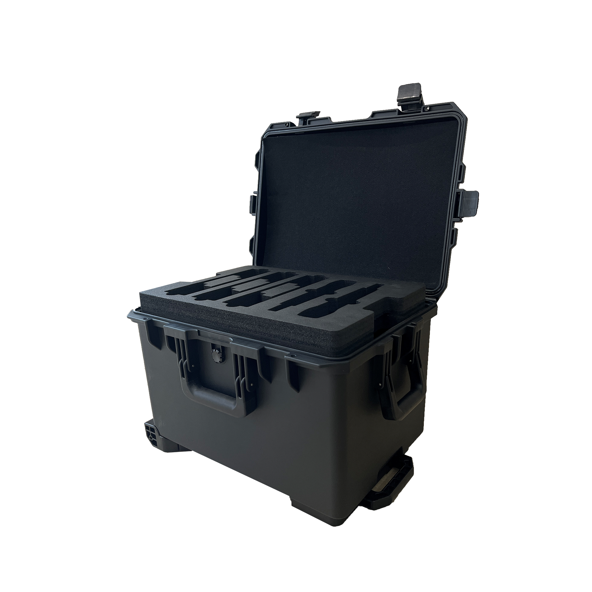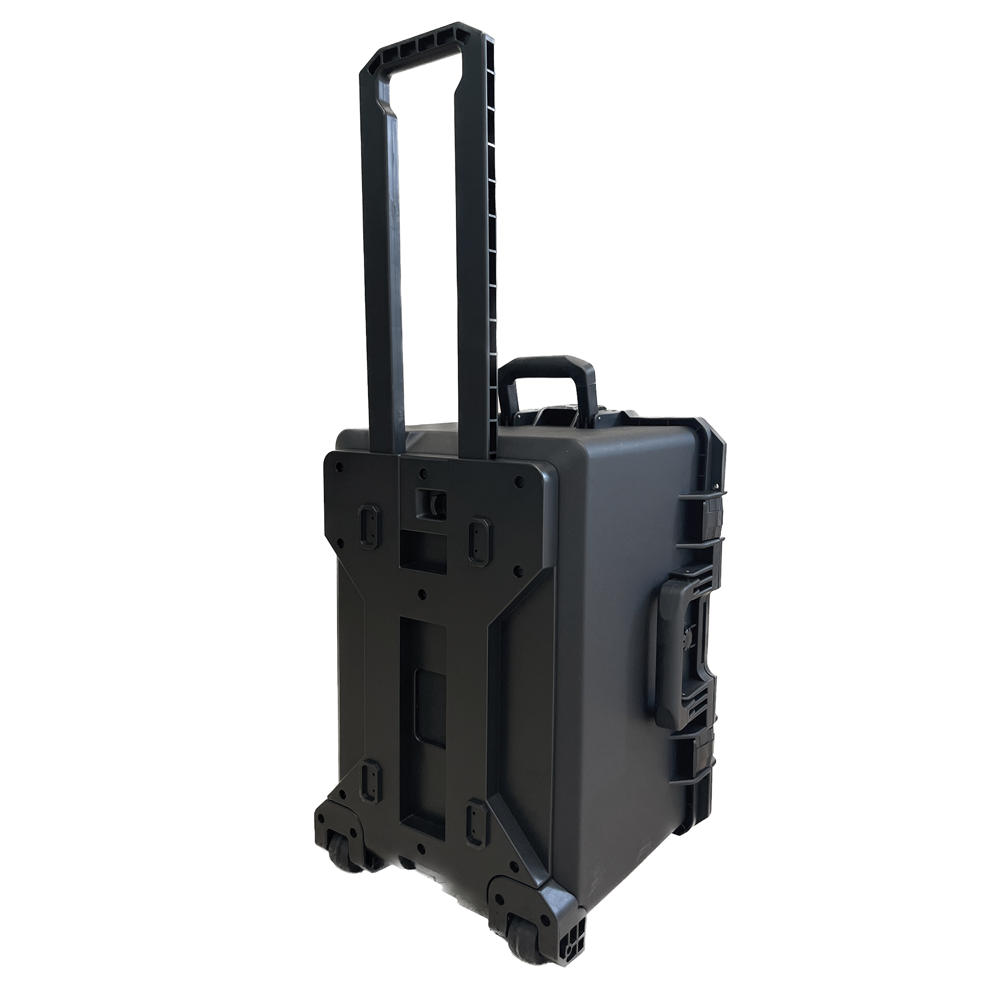 箱体采用高精密一体注塑成型工艺,表面哑光磨砂处理;具备防水防尘 IP67 等级、防震防跌落且重量轻便。支持定制内衬棉收纳设备,并且支持激光品牌 LOGO 服务。