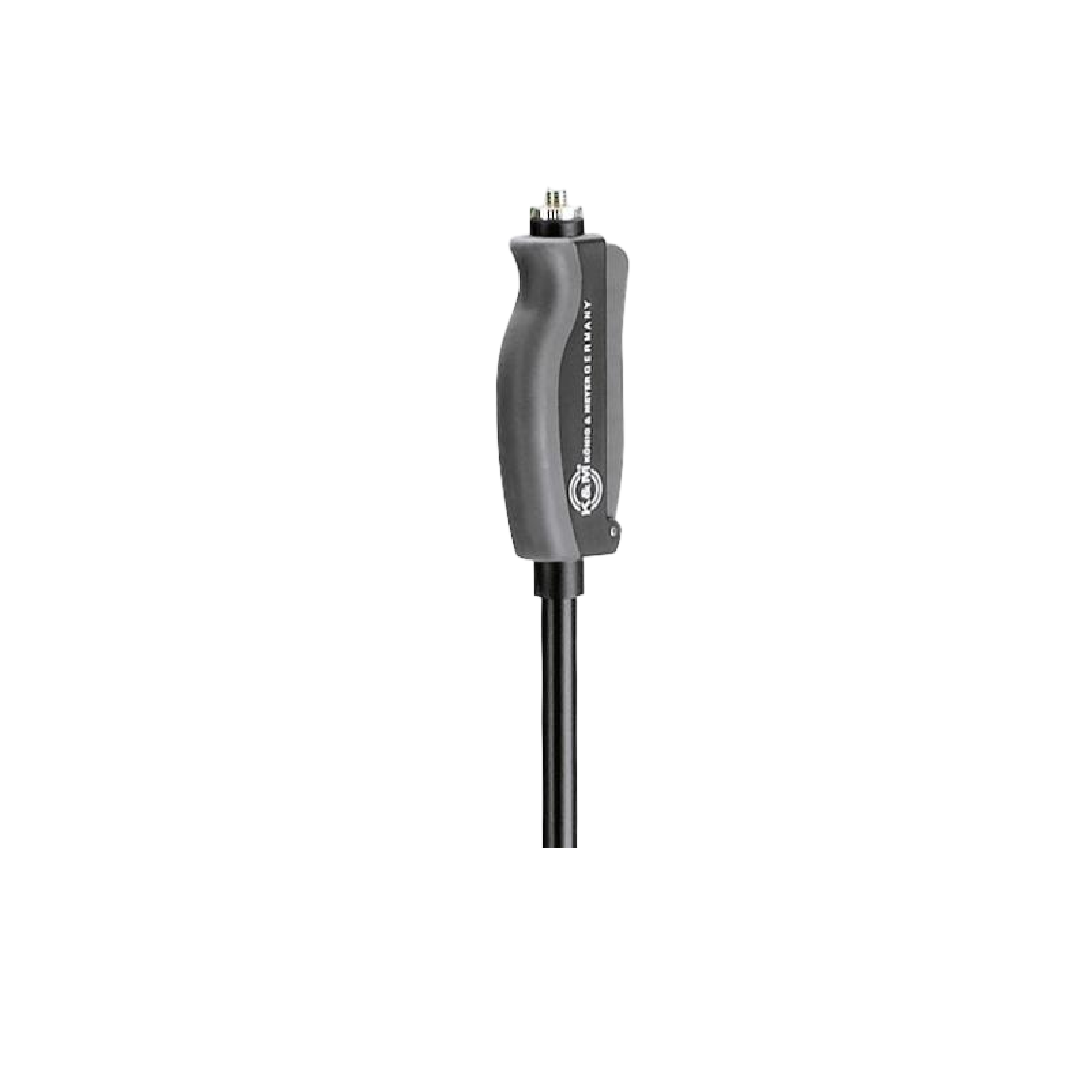 本款落地式单手按压升降麦克风支架,配有独特的soft-touch升降 手柄,只需按压手柄即可 快速实现麦克风升降,铝制主杆喷绘优质黑色,可搭配直径34-40mm麦克风夹子使用,本款专为演唱打造